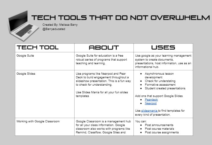 The journey of a thousand miles starts with that first step. This Tech Tool guide, linked as a Google Doc here and above, can help you organize and identify the tools and their uses.