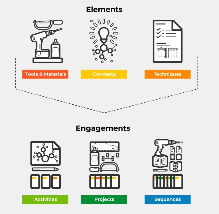If you have your own projects but need support in teaching techniques and getting students up to speed, our Concept and Techniques Elements are reusable building blocks. They are designed to be independent and provide guidance on tools, materials, and implementation to help bring your dream project to life.